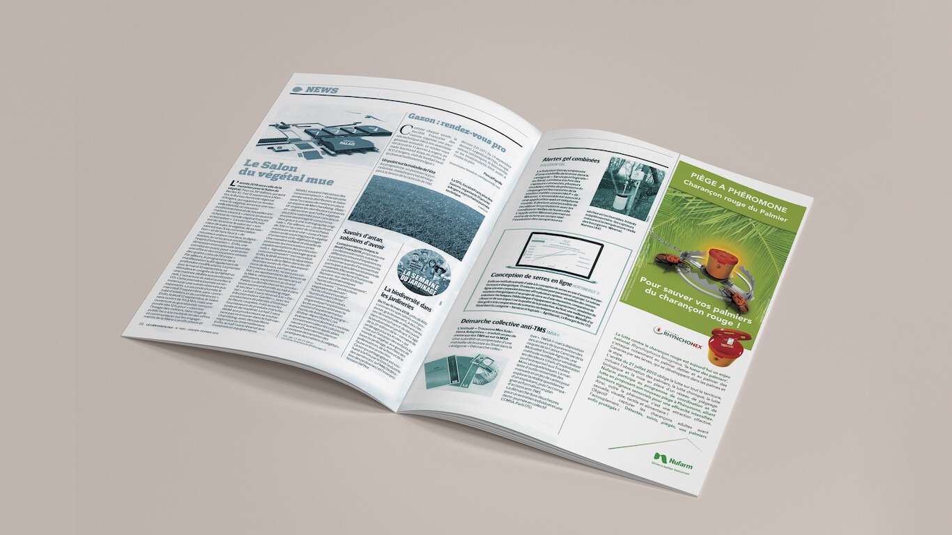 Au delà d’une mission de media-planning et d’achat d’espaces presse (Lien Horticole, Paysage Actualités, Phytoma), l’objectif de communication était de démontrer l’efficacité des produits Nufarm. Notre approche créative s’est toujours porté sur des créations d’images spectaculaires, appuyées par des slogans impactants.